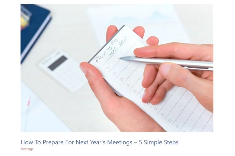 That’s a quick summary of the 5 Simple Steps To Prepare for Next Year’s Meetings to get you started.